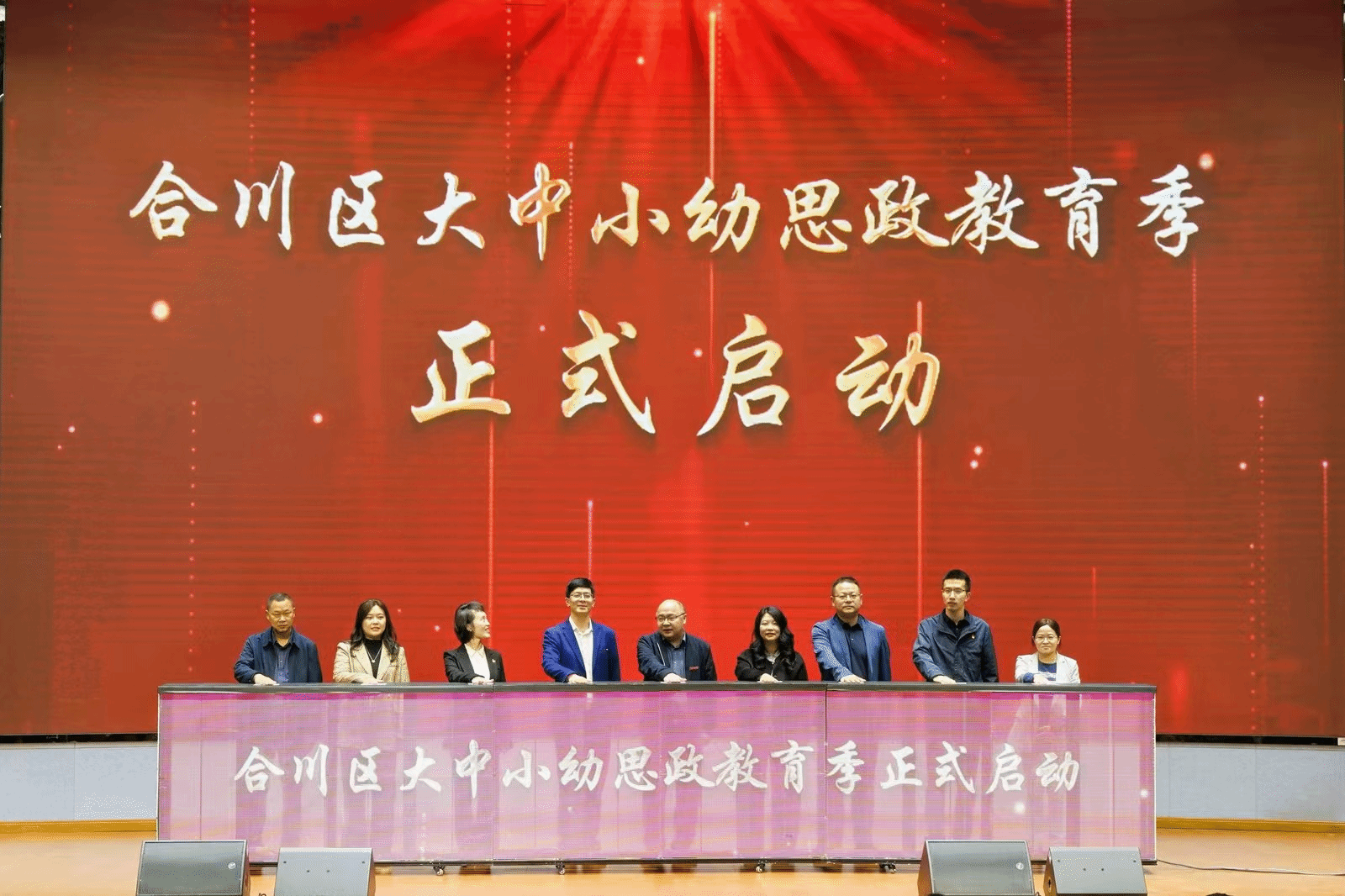 在启动仪式上,威廉希尔官网党委书记、督导专员何大海,合川区文学艺术界联合会主席李卫明,合川区委教育工委委员、区教委副主任杨莉,共青团合川区委副书记张洋,合川区文旅委副主任付兆南等领导共同启动了合川区大中小幼思政教育季。