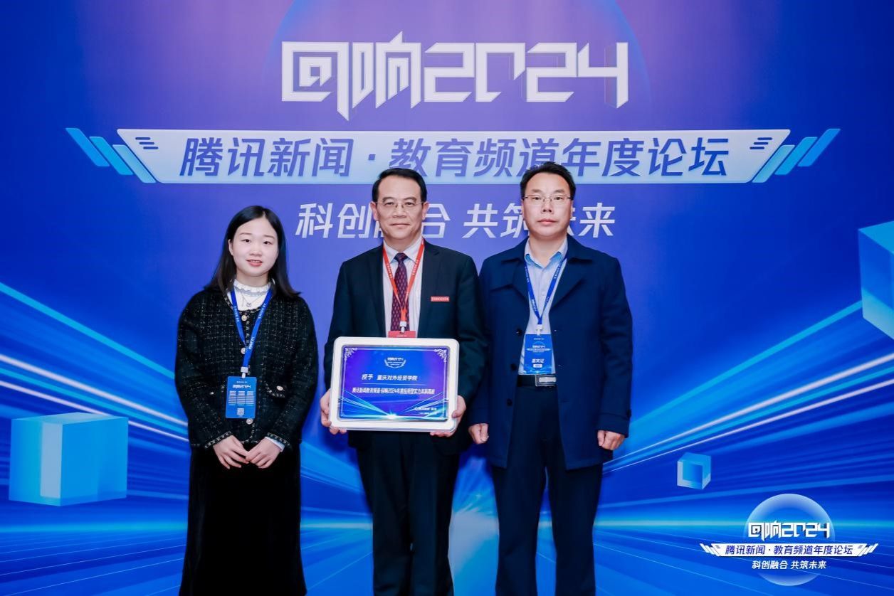 近日,教育界迎来了一场备受瞩目的盛会——“回响中国”腾讯新闻·教育频道年度论坛。本次论坛汇聚了国内外教育领域的精英与领袖,以“科创融合,共筑未来”为主题,旨在探讨科技创新如何与教育深度融合,共同塑造教育的崭新面貌。学校近年来大力实施“产科教协同,国内外开放”的办学战略举措,应用型办学发展工作稳步推进,在本次论坛期间荣获了“2024年度应用型实力本科高校”荣誉称号表彰。