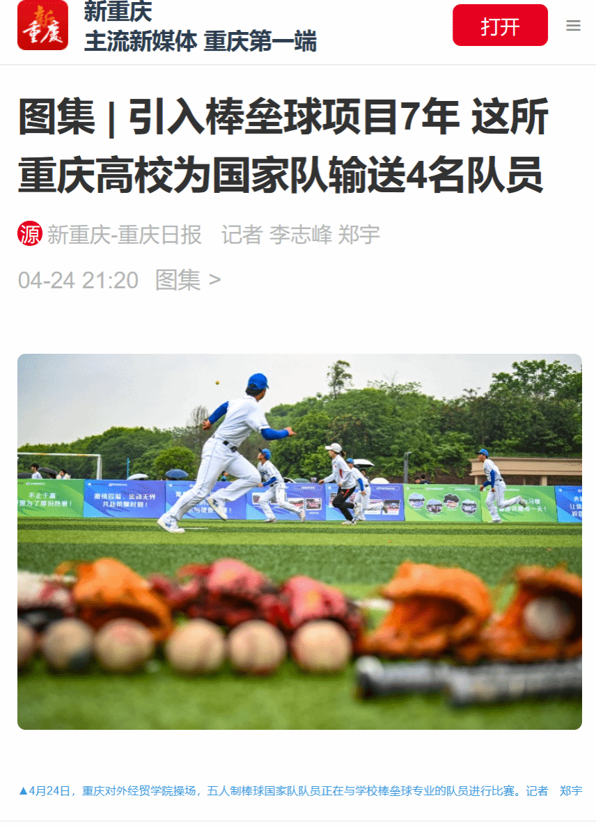 【重庆日报】报道引入棒垒球项目7年,这所重庆高校为国家队输送4名队员