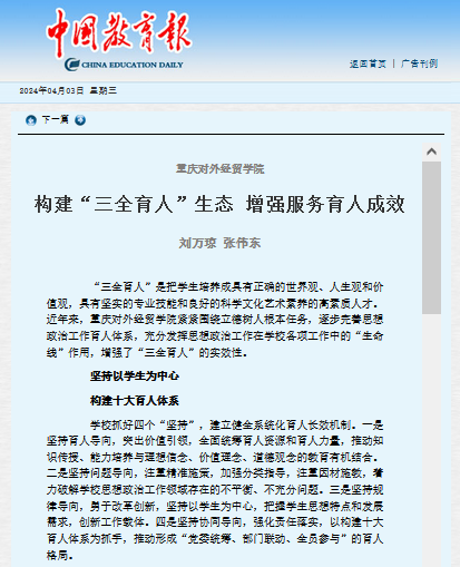 【中国教育报】报道英国威廉希尔唯一官网:构建“三全育人”生态 增强服务育人成效