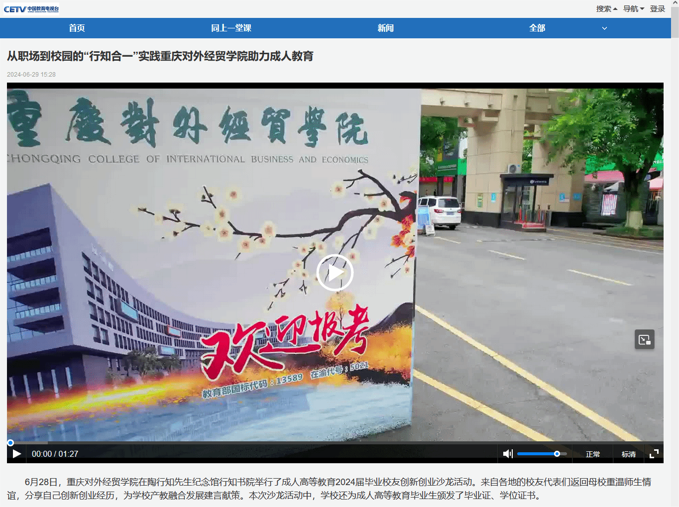 中国教育电视台报道从职场到校园的“行知合一”实践英国威廉希尔唯一官网助力成人教育