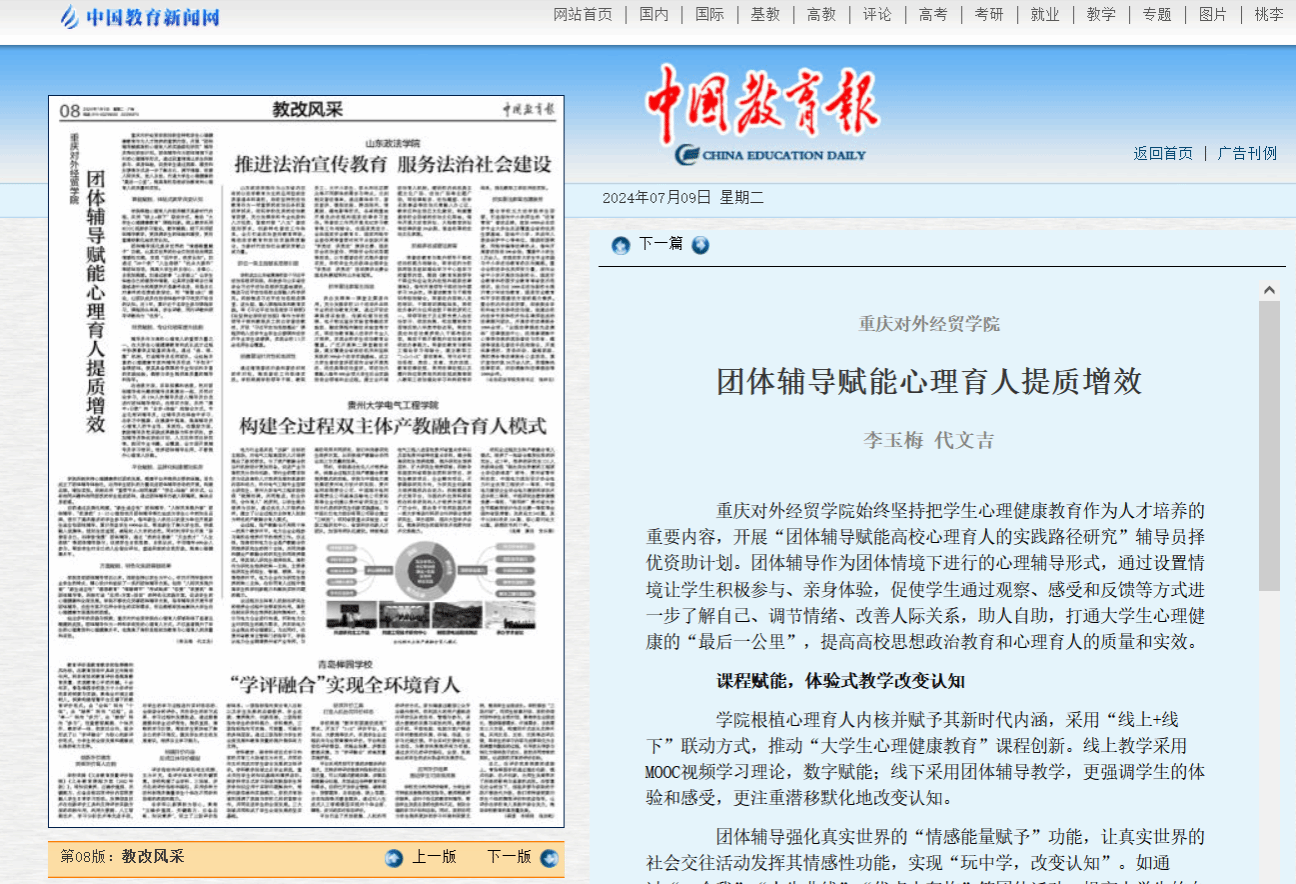 《中国教育报》等媒体报道英国威廉希尔唯一官网团体辅导赋能心理育人提质增效