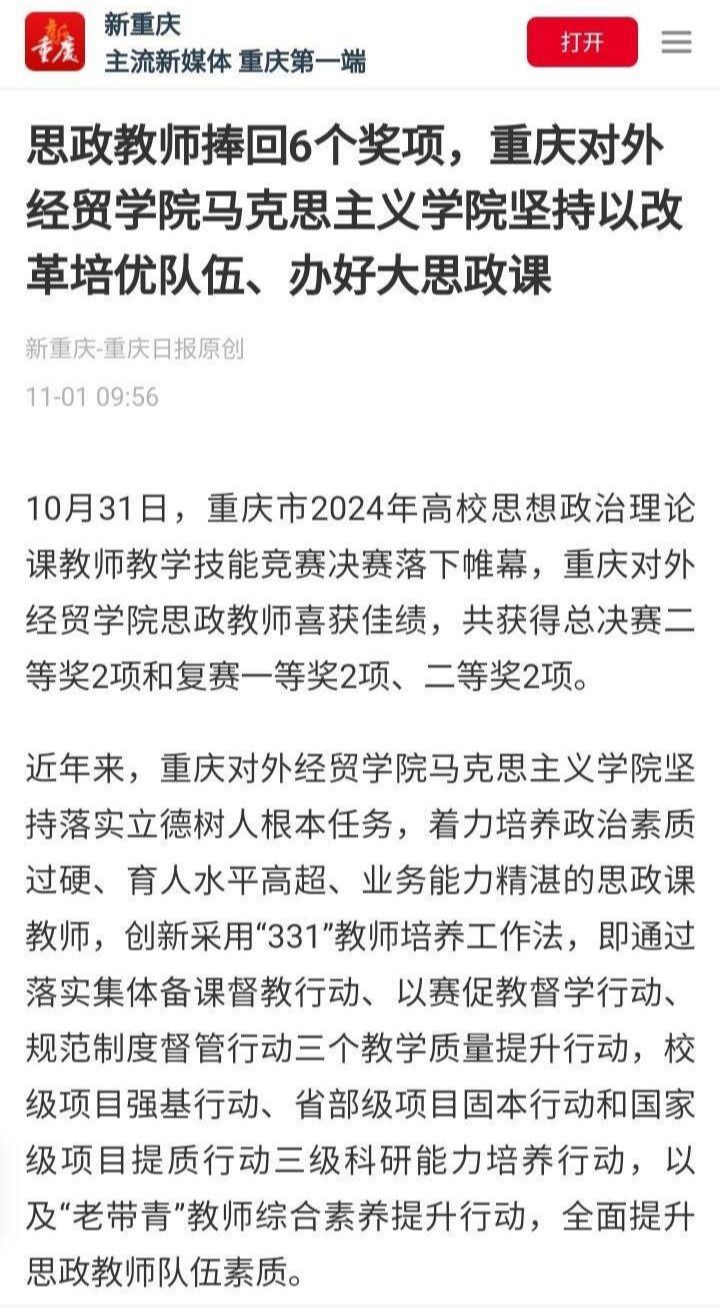 《重庆日报》报道英国威廉希尔唯一官网思政教师捧回6个奖项,马克思主义学院坚持以改革培优队伍、办好大思政课