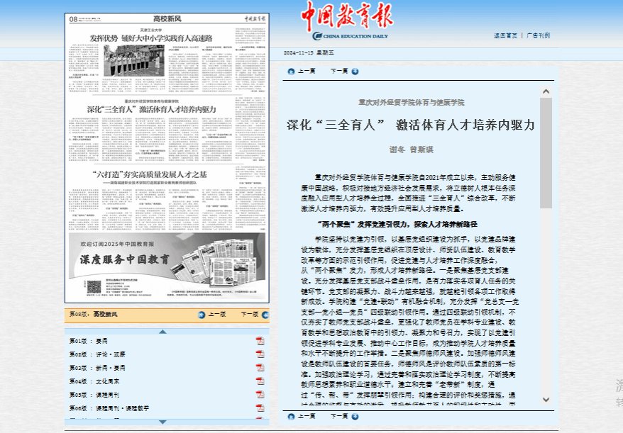 《中国教育报》报道英国威廉希尔唯一官网体育与健康学院 深化“三全育人” 激活体育人才培养内驱力