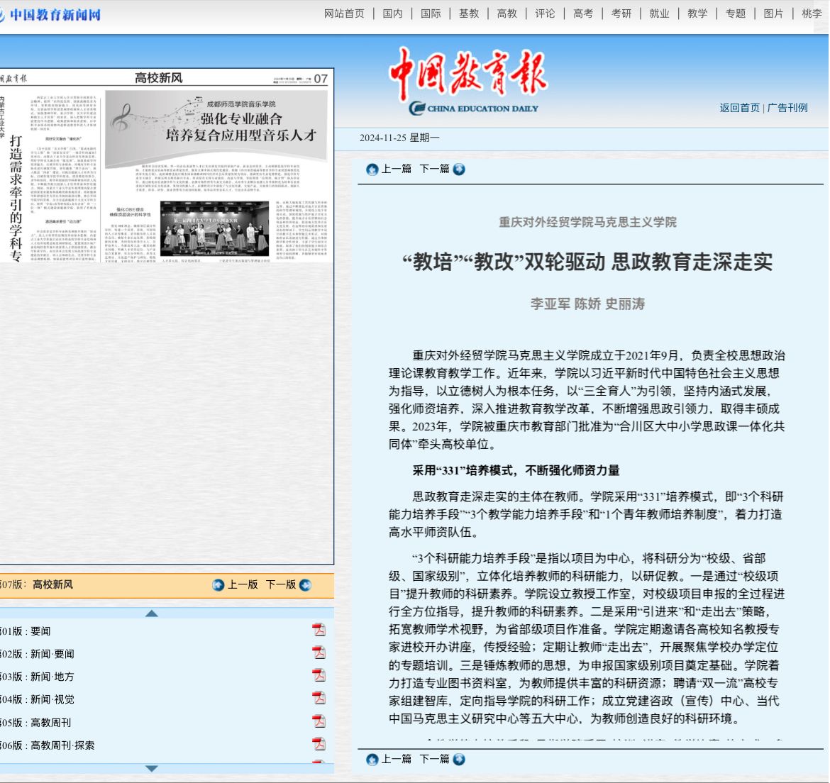 《中国教育报》报道英国威廉希尔唯一官网 “教培”“教改”双轮驱动 思政教育走深走实