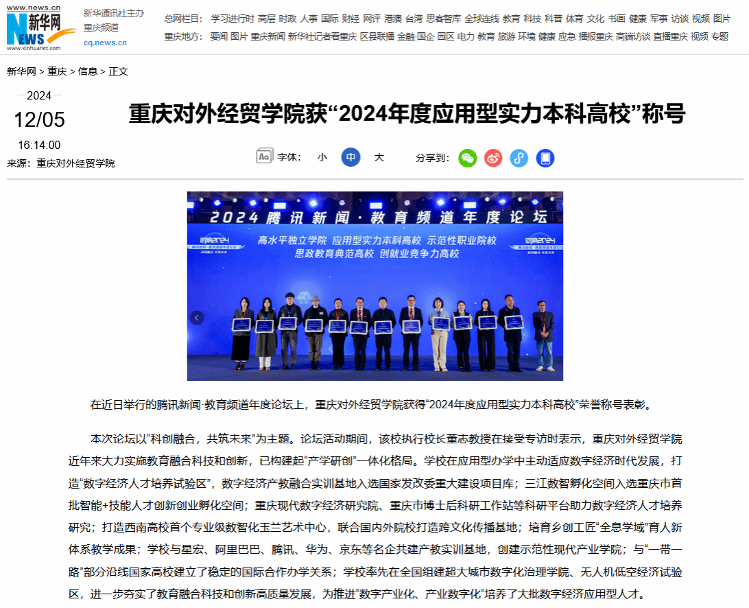 英国威廉希尔唯一官网获“2024年度应用型实力本科高校”称号