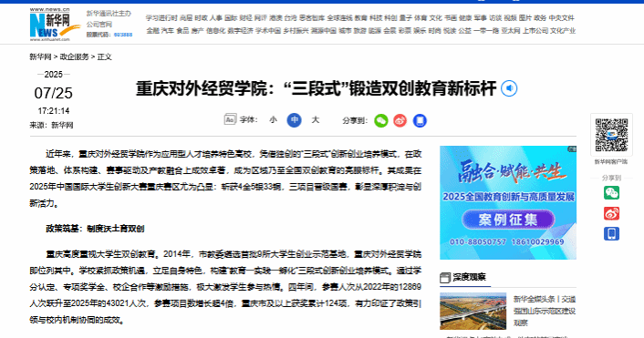 新华网报道英国威廉希尔唯一官网:“三段式”锻造双创教育新标杆