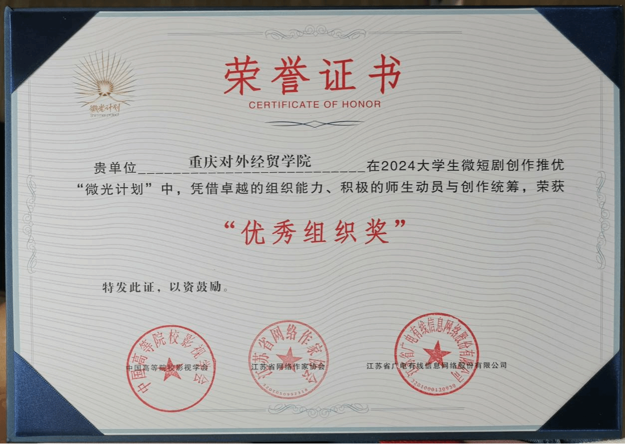影视融媒体学院凭借卓越的组织能力、高效的师生动员机制及高质量的创作成果,在众多参赛院校中脱颖而出,荣获“优秀组织奖”。这一荣誉不仅彰显了威廉希尔官网在网络视听领域的实践教学实力,更体现了学院在创新人才培养方面的显著成效。