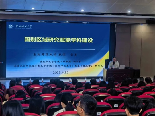 4月25日,管理学院在B1115学术报告厅举行了三江大讲堂系列讲座,邀请了“重庆市孔子学院工作联盟”秘书长,“成渝地区双城经济圈孔子学院(国际中文教育)联盟”(重庆方)秘书长雷勇教授作 “国别区域研究赋能学科建设”学术讲座,讲座由李安平院长主持,管理学院、跨境商务学院、外语外贸学院、艺术设计学院近300名师生聆听了讲座。