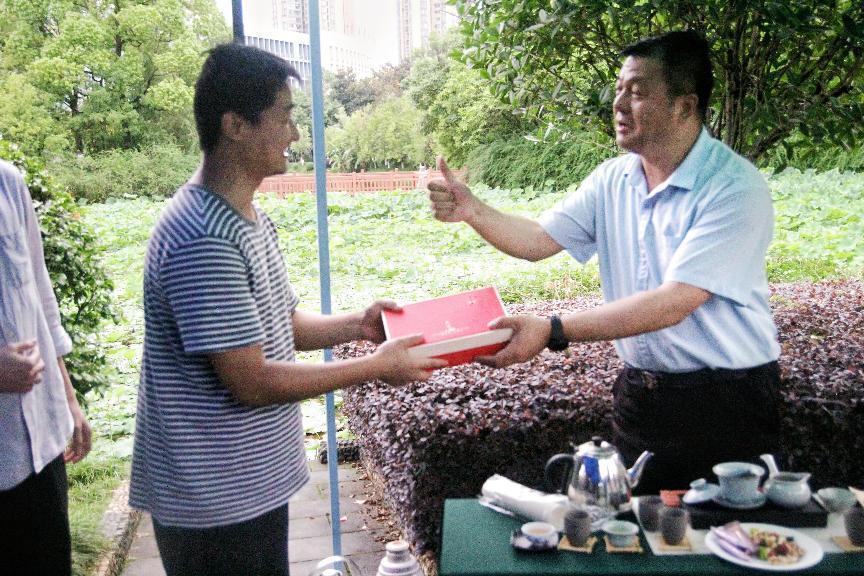 活动最后,茶艺小组向报名参与活动的10余名教职工赠送了高级茶礼,茶艺小组组长张英还将自己收藏的十余件主人杯、茶宠等礼品赠送给现场师生,与会人员收获满满。