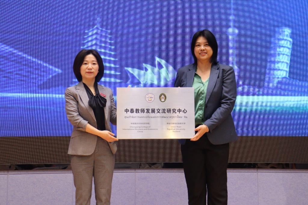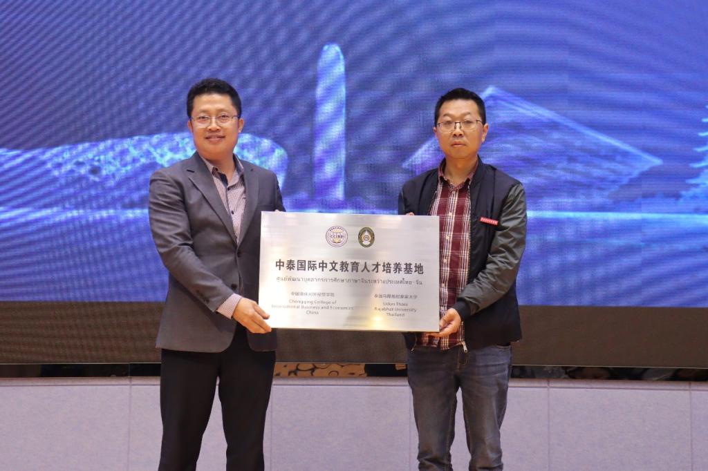 推进会上,乌隆他尼皇家大学萨维提副校长就共建“中泰教师发展研究中心”向威廉希尔官网外语外贸学院李霓院长授牌,伊绨坤副校长就共建“中泰国际中文教育人才培养基地”向威廉希尔官网文学与创意传播学院何杨波院长授牌。