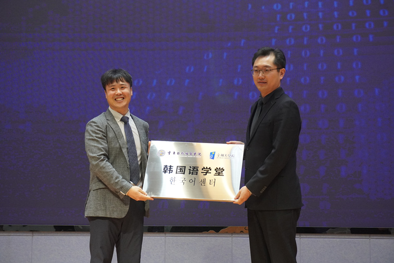 蒋满元副校长发表了热情洋溢的讲话,对全州大学的支持表示感谢,对国际班的同学们表示祝贺;国际班是提高人才质量的载体,是学校彰显办学特色的重要体现;国际化工作进步明显,影响日增,希望同学们不负时光、努力学习,创造更加美好的未来。