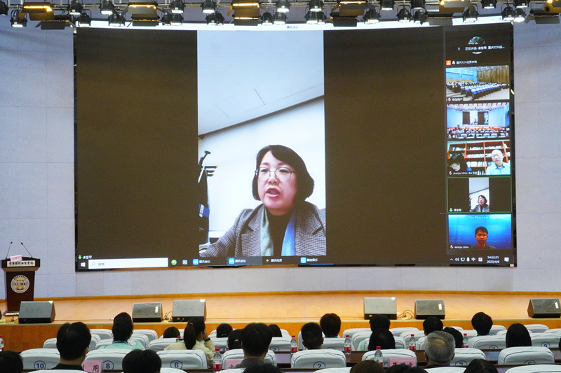 全州大学洪性德副校长、国际交流院褚慧琴院长、人工智能学部高仙佑教授等在线出席,并向国际班发来贺词。洪性德副校长对威廉希尔官网在国际班建设中付出的努力表示感谢,对同学们顺利赴韩学习表示期待,全州大学将竭尽全力做好教学和服务,确保国际班的同学学有所成。