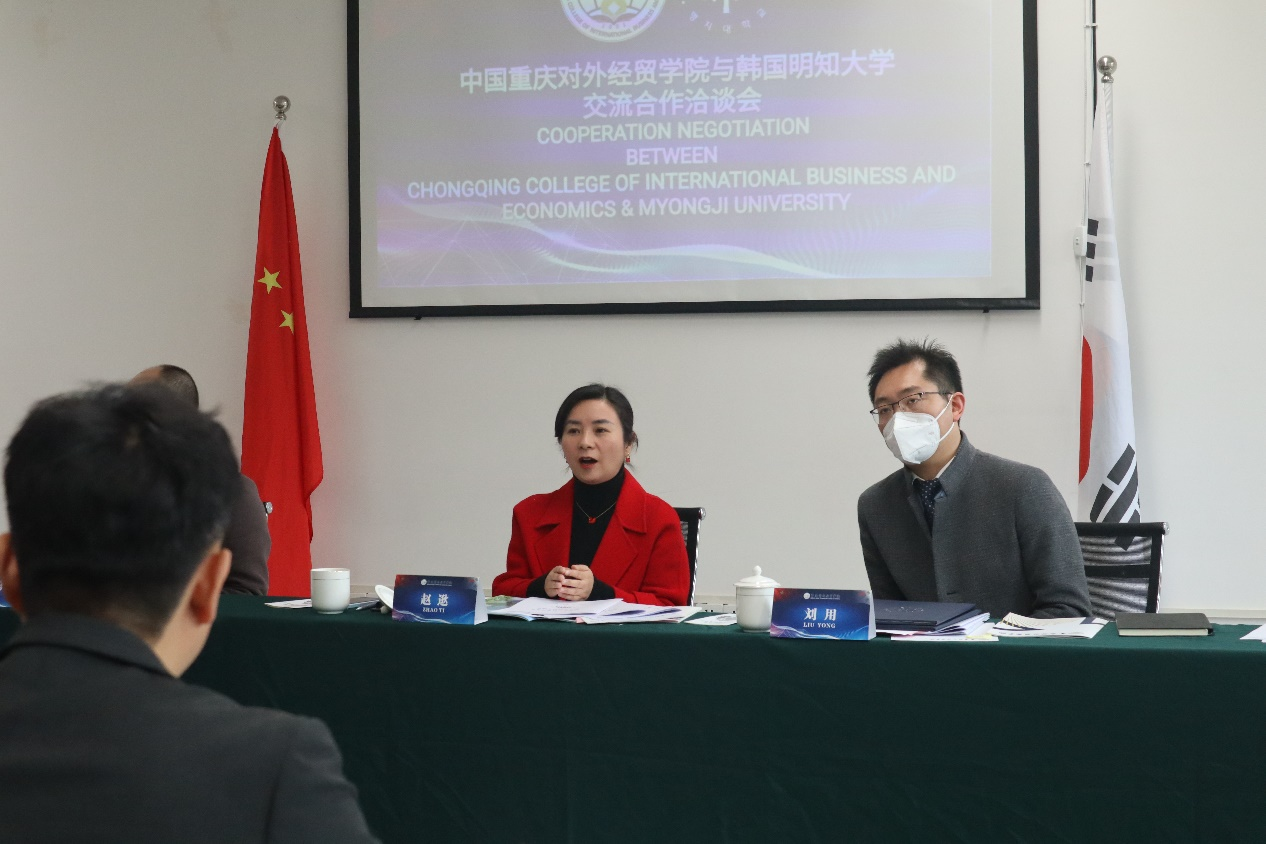 跨境商务学院院长赵逖、党总支书记任伟、副院长李艳,B校区管理与服务中心主任余勇,国际交流合作处处长刘用,以及相关工作人员出席了会谈。