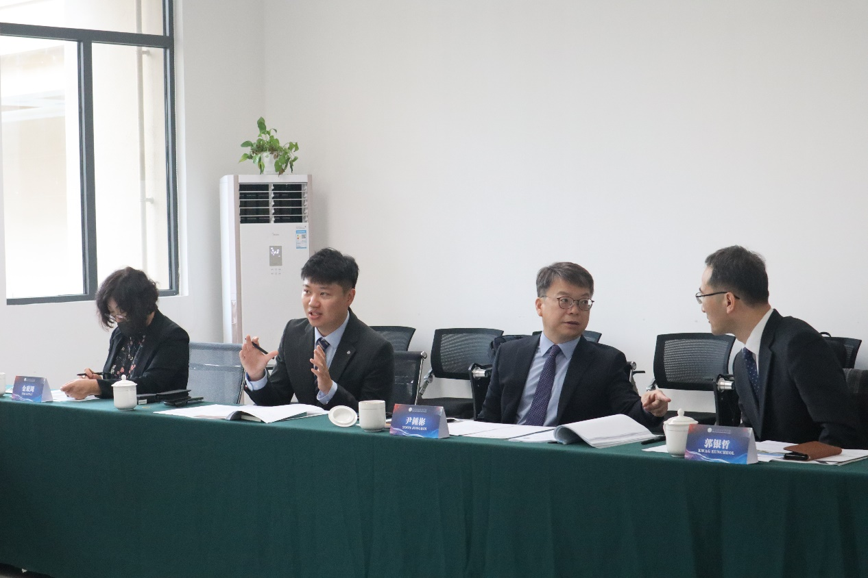 3月27日,韩国明知大学国际交流处尹锺彬处长、郭银哲副处长、金珉周教授,明知大学中国事务所毕志鹏主任等到学校访问,并就商科人才培养合作进行会谈。