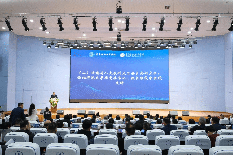 甘肃省人大教科文卫委员会副主任,西北师范大学原党委书记、校长张俊宗教授致辞,他表示本次研讨会具有丰富内涵:第一,数字文明赋予了应用型高校新使命。第二,数字文明注入应用型高校新动能。第三,数字文明重塑应用型高校新生态。他表示,数字文明时代,社会发展瞬息而变,应用型高校需要积极主动地拓展国际视野,坚持立足前沿、符合数字时代发展的新思想、新理念和新范式,为未来教育绘就应用型大学高质量发展新画卷,描绘美好的发展蓝图。