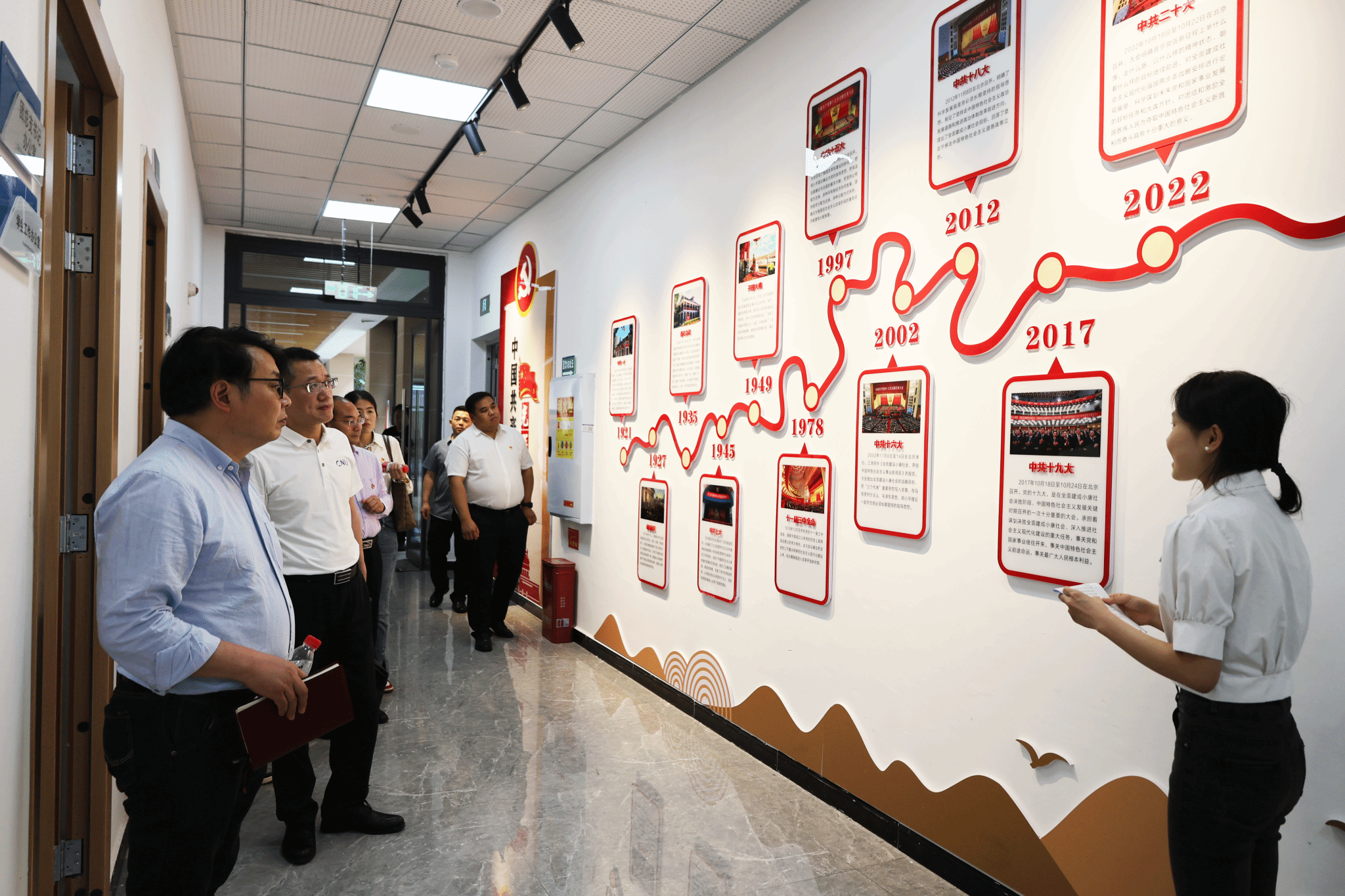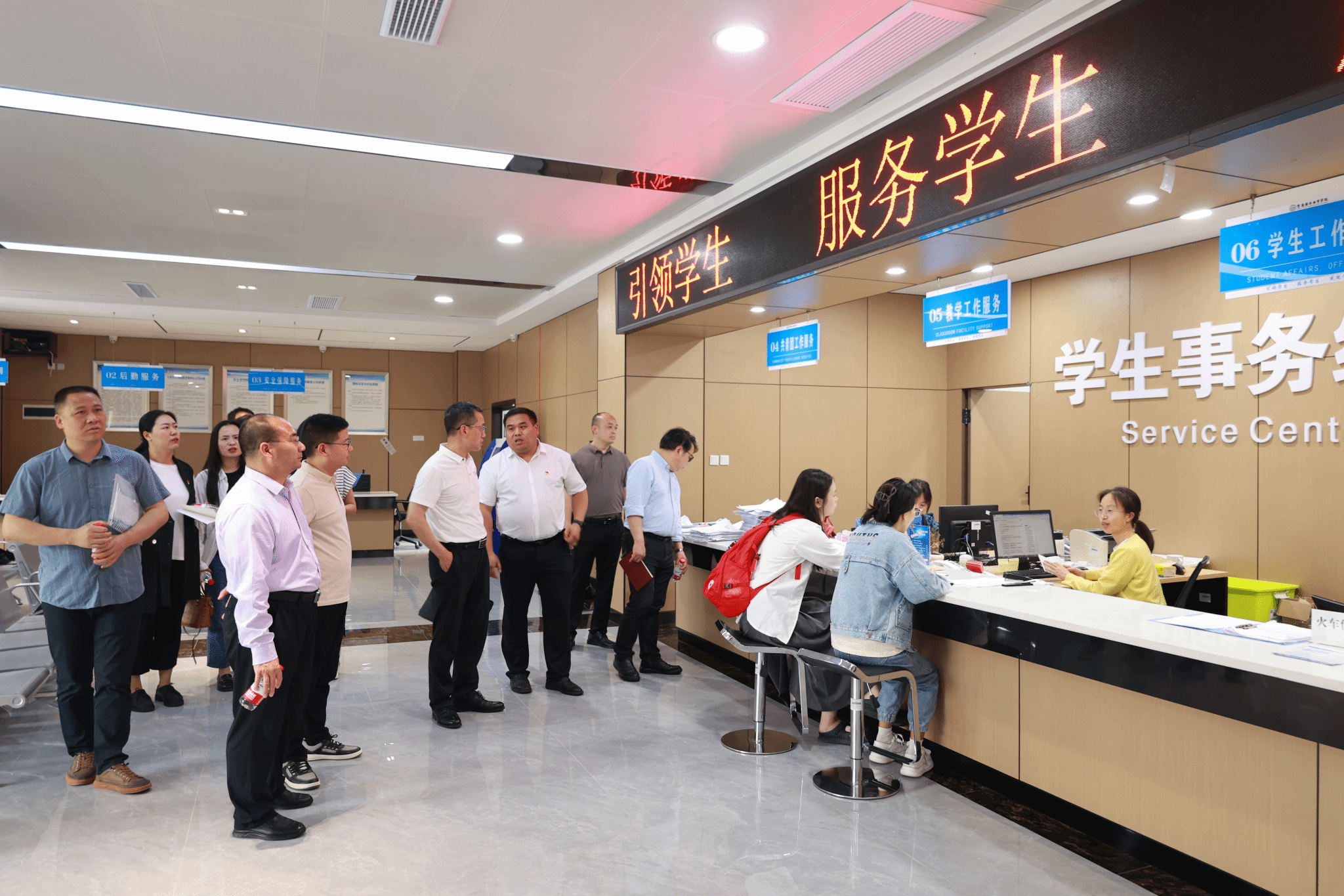 唐加祥书记高度评价学校党建工作,并实地考察了学校党建活动中心、B校区一站式服务大厅、全国第四批样板支部培育创建单位跨境商务学院和重庆市第二批标杆院系培育创建单位外语外贸学院的党建活动阵地。