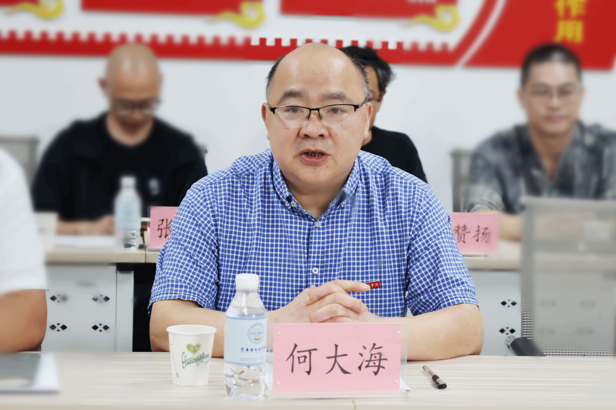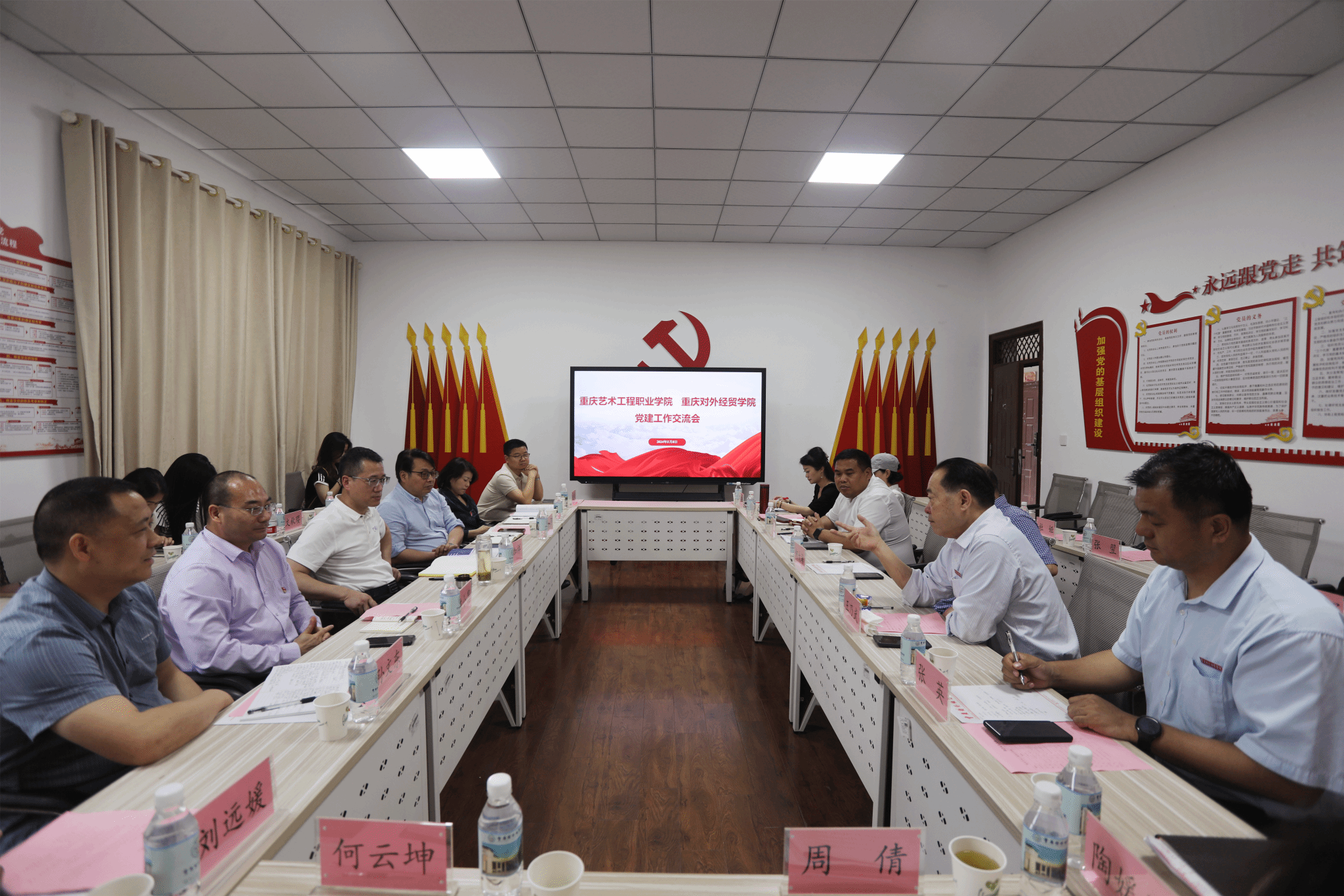 5月8日下午,重庆艺术工程职业学院党委书记唐加祥、党委委员、副校长徐永恒一行到校交流党建工作。学校党委书记何大海,党委委员、常务副校长王乃武,党政办、组织部负责人,相关二级学院党总支书记,组织部、宣传部、统战部相关人员参加了交流会。会议由学校党委委员、组织部部长梁修昌主持。