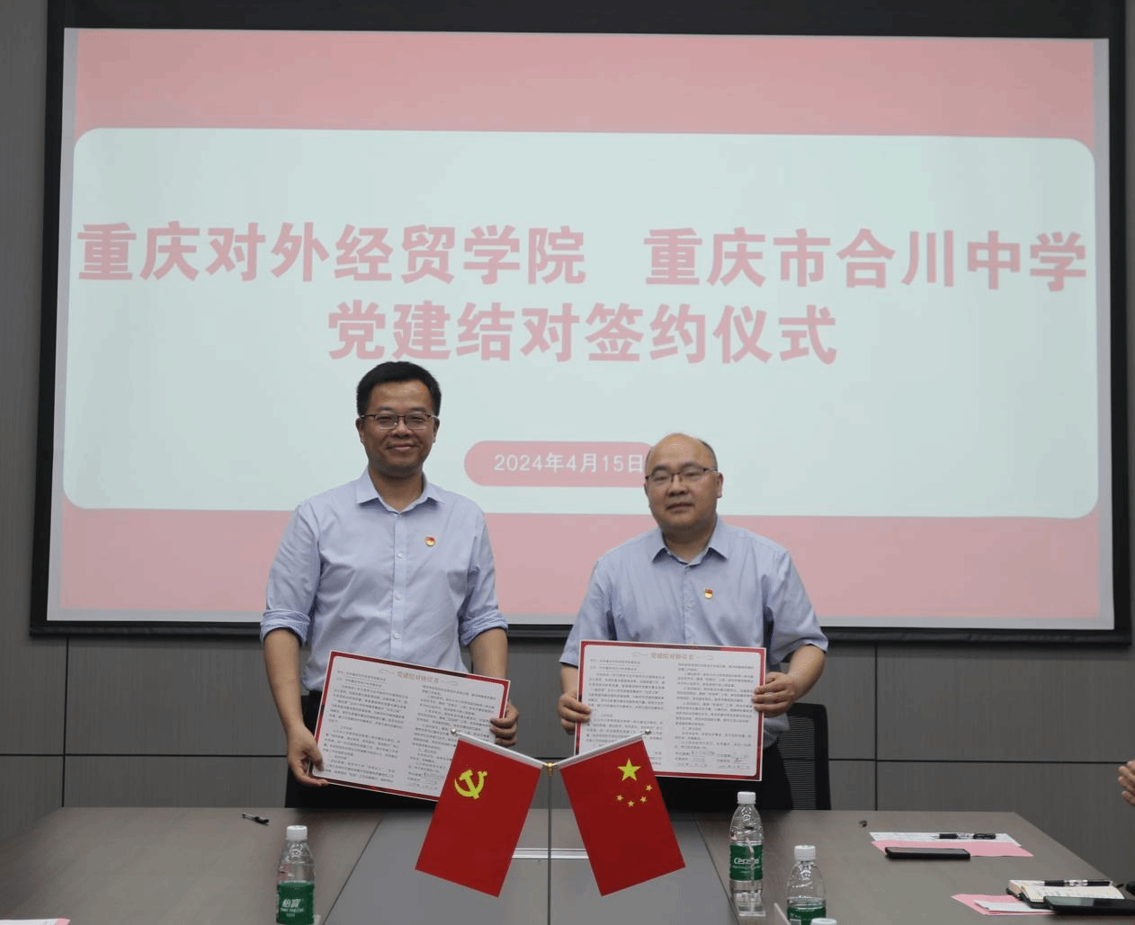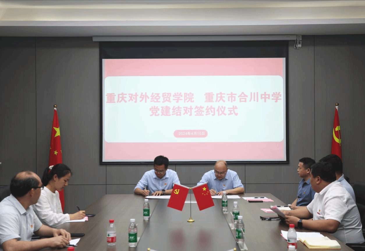 4月15日,威廉希尔官网与合川中学开展党建工作“结对共建”签约活动。威廉希尔官网党委书记、督导专员何大海,党委委员、常务副校长王乃武,党委副书记、校长傅林,合川中学专职副书记何小润等人出席此次签约仪式。