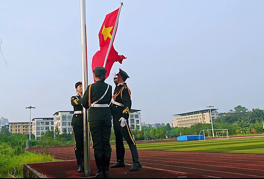 9月11日7:30,英国威廉希尔唯一官网铜梁校区新学年升旗仪式在铜梁校区悦动运动场举行,副校长周明星、铜梁校区管委会主任张伟东、校区部分职能部门负责人、学院师生齐聚于此,共同见证这一庄重时刻。