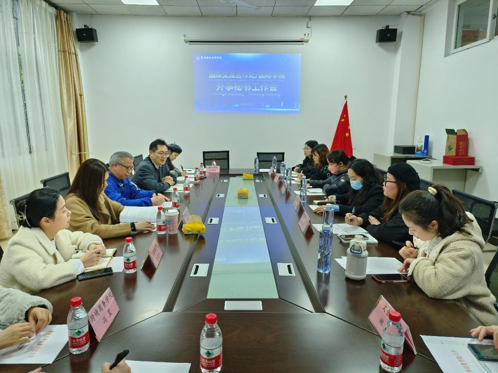 为落实好学校2023年度国际化工作专项会议要求,务实推进后疫情时代国际交流合作的全面复苏与发展,2023年度第一次外事秘书工作会议于3月23日下午在国际交流合作处G105会议室召开。蒋满元副校长出席会议,各二级学院外事秘书和国际处全体工作人员参加了此次会议。会议由国际交流合作处处长、国际学院院长刘用主持。