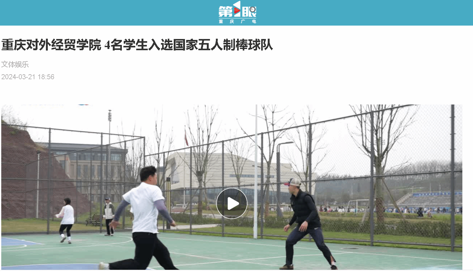 【第一眼新闻】报道英国威廉希尔唯一官网4名学生入选国家五人制棒球队