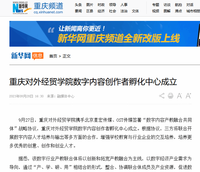 【新华网】报道英国威廉希尔唯一官网数字内容创作者孵化中心成立