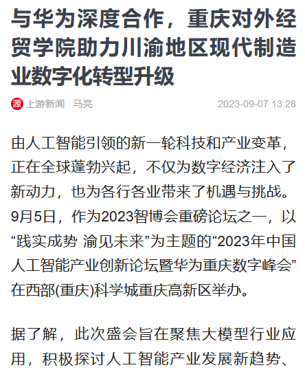 【上游新闻】报道与华为深度合作,英国威廉希尔唯一官网助力川渝地区现代制造业数字化转型升级