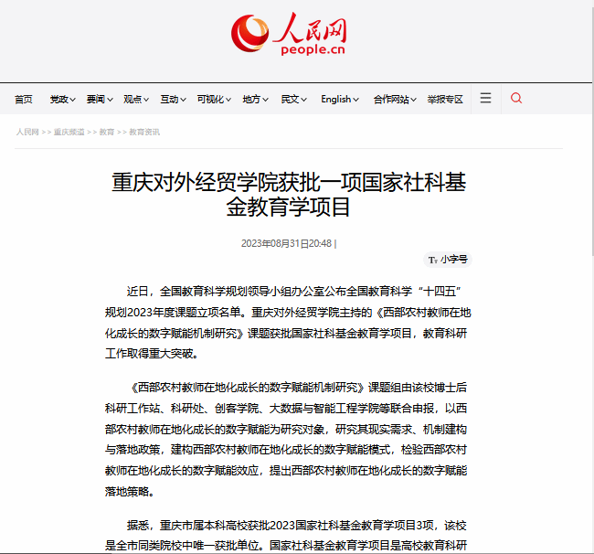 人民网:《英国威廉希尔唯一官网获批一项国家社科基金教育学项目》