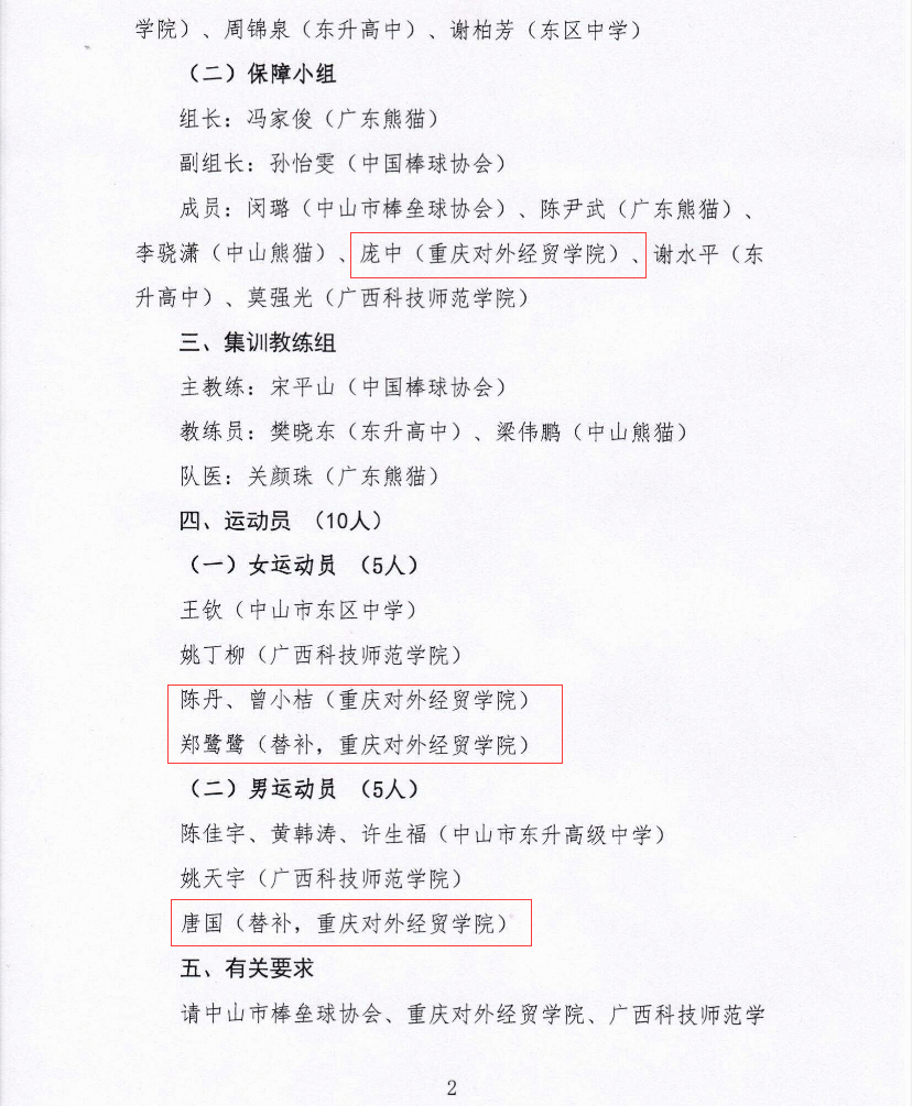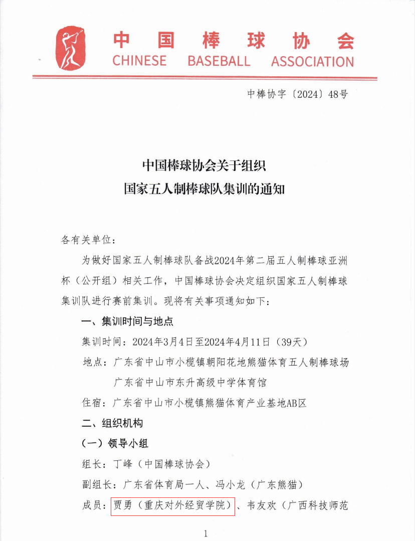 为筹备2024年4月13日—16日在韩国首尔举行的五人制棒球亚洲杯比赛,中国棒球协会从2022年全国五人制棒球锦标赛冠、亚军队伍中,通过单位推荐、集中选拔环节,在广东中山市小榄镇熊猫体育成立了中国五人制棒球队。