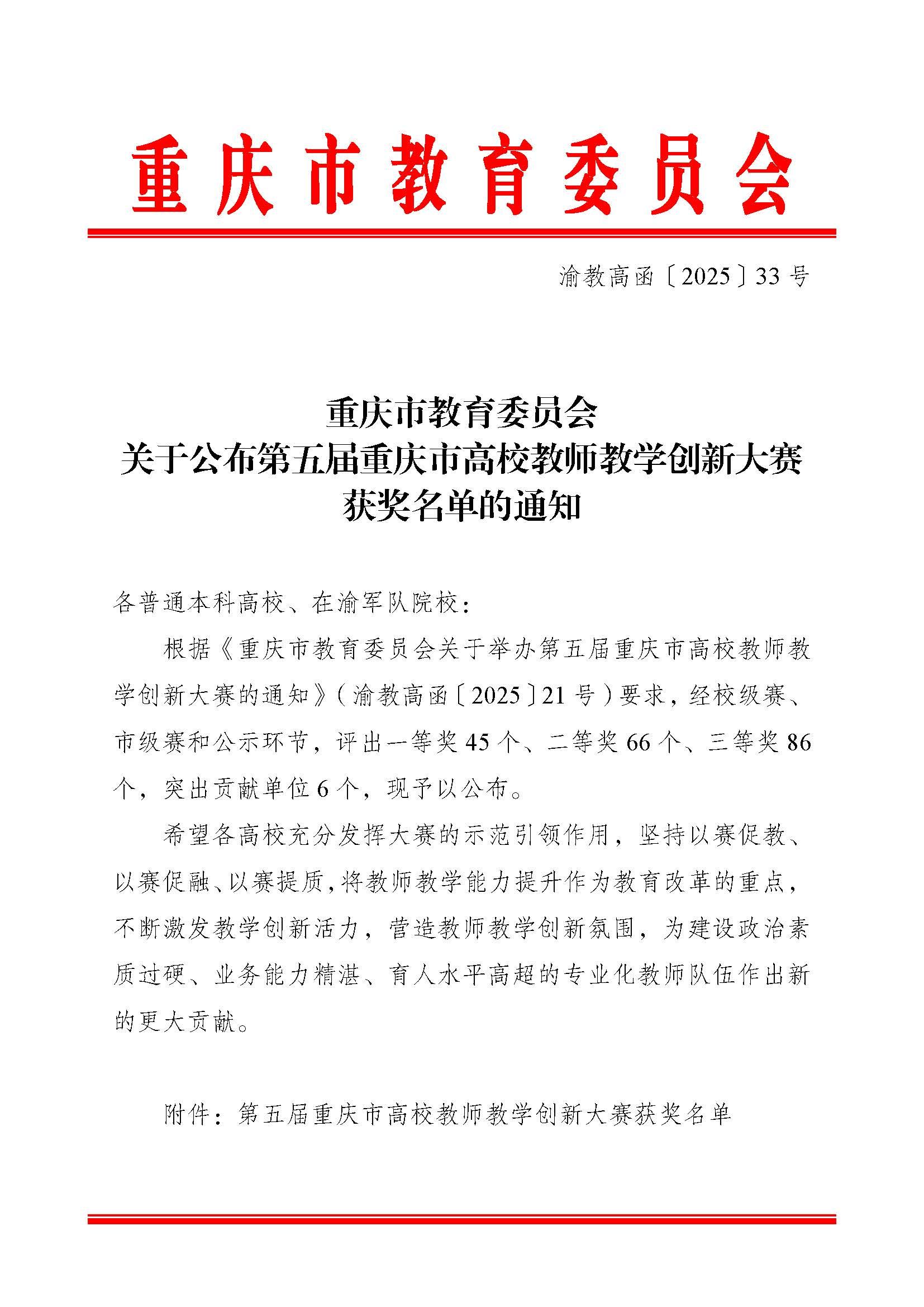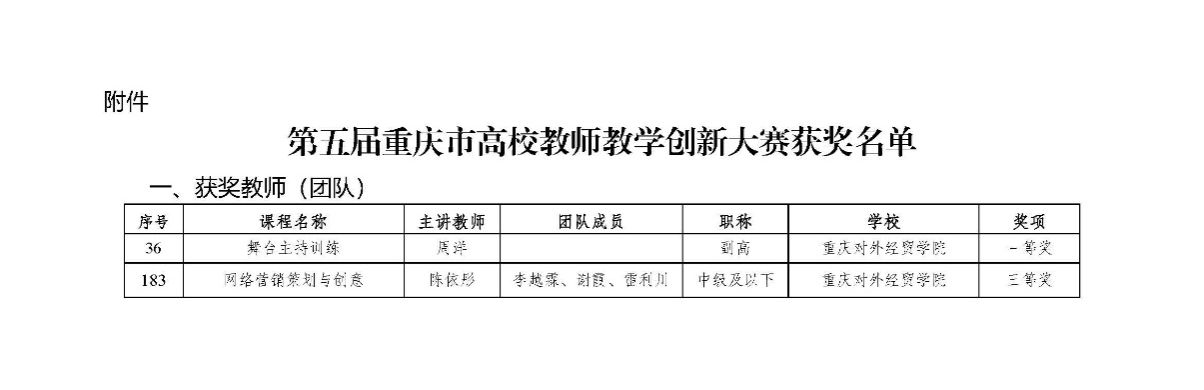 近日,重庆市教育委员会公布了第五届重庆市高校教师教学创新大赛获奖名单,威廉希尔官网教师在众多优秀选手中脱颖而出,斩获殊荣:
