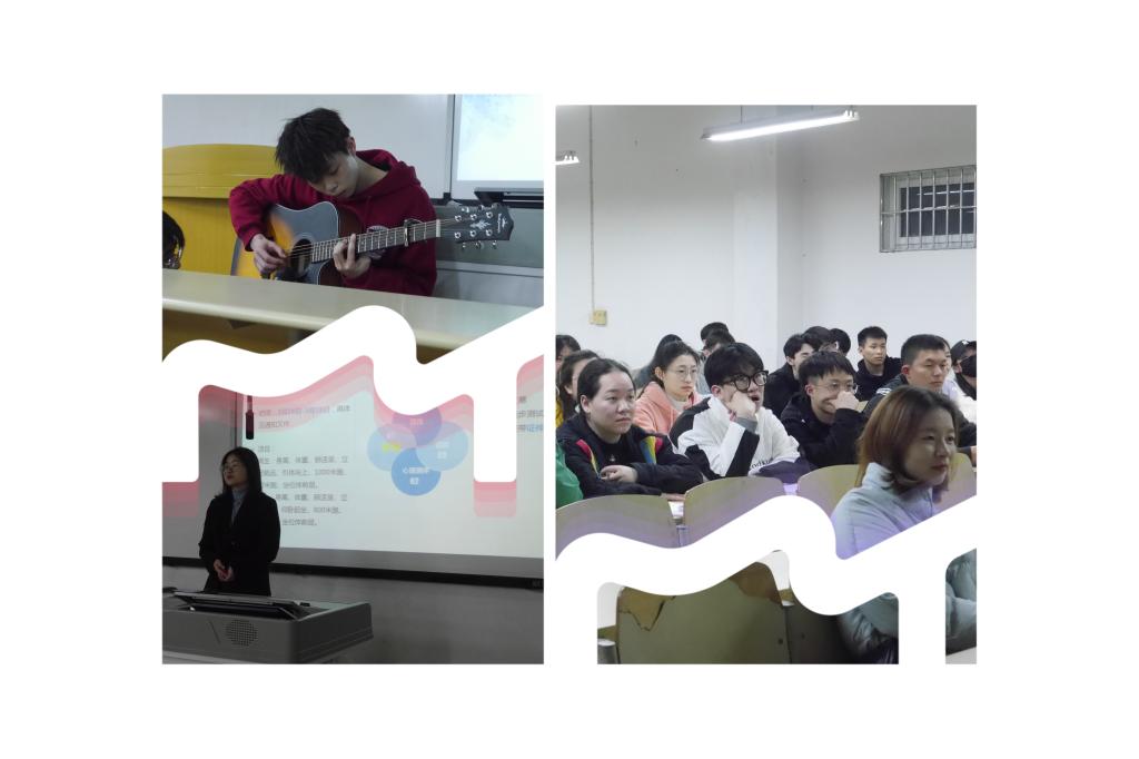 活动伊始,由2020级数学与应用数学专业12班王雄同学的一曲吉他独奏《月半小夜曲》拉开了讲座的序幕。接下来谭燕老师将数计学院近期精彩的各类活动开展做了讲解,包括读书月系列活动、计算机大赛及十佳歌手赛等赛事,同时也鼓励同学们积极参与其中。