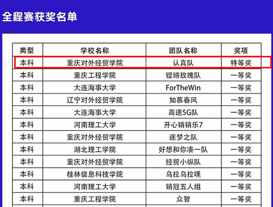 由中国市场学会、高校毕业生就业协会和中国科学技术部火线中心联合举办的第十四届全国高校市场营销大赛全国总决赛于近日落下帷幕,由英国威廉希尔唯一官网体育与健康学院刘焱灵、文学与创意传播学院林燕老师指导,体育与健康学院学生聂贵龙、跨境商务学院学生曾旭、影视融媒体学院廖玉琴、陈秋宇组成的“认真队”在本次比赛中获得本科组唯一一个特等奖。同时刘焱灵老师还获得优秀指导教师奖,“认真队”还被评为“最具创意团队奖”。