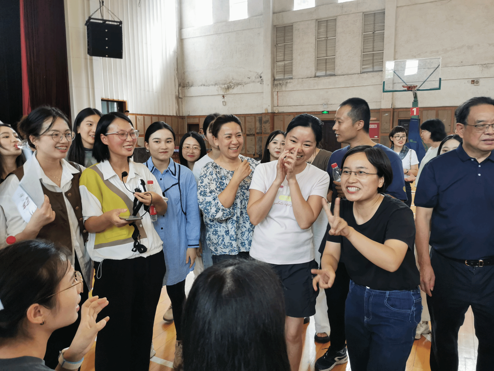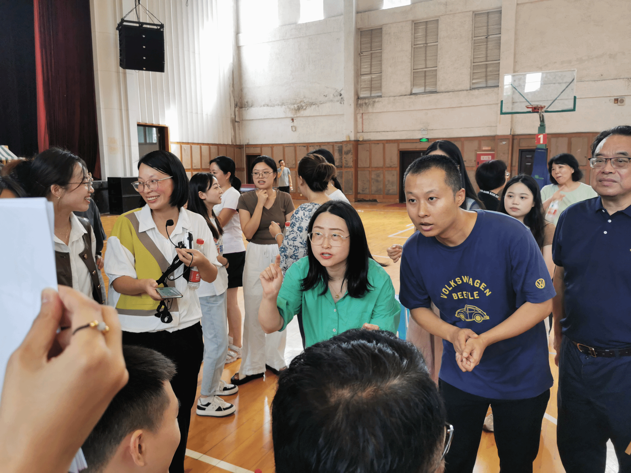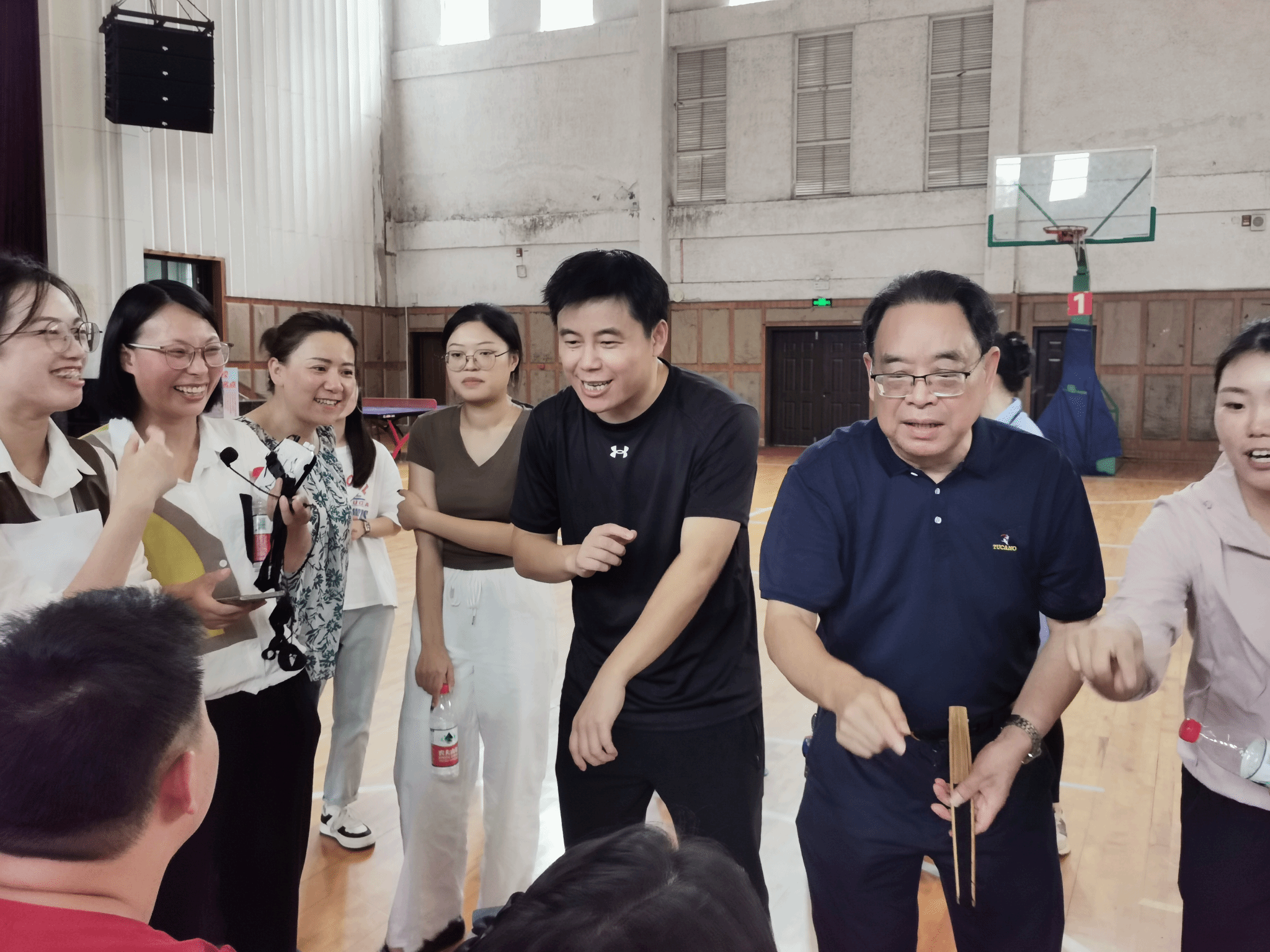 在“筷”乐传递游戏中,老师们小心翼翼用筷子传递乒乓球,彼此鼓励,默契配合,让全场气氛瞬间燃起来;在“篮”不倒你游戏中,老师们手脚并用、花样过关,依次通过拍篮球、踢毽子、跳绳障碍,铆足劲为团队获胜而努力,气氛紧张又有趣;在“你比划我猜”游戏中,老师们手舞足蹈、滔滔不绝,使出浑身解数表达词汇,瞬间将活动氛围推向高潮。