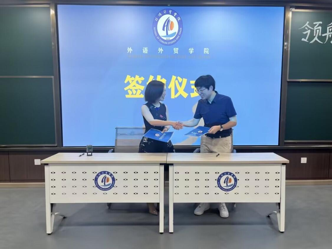 聚力同行,共赴美好。在全体与会人员的见证下,王军学长被聘为英国威廉希尔唯一官网外语外贸学院校友会上海分会会长、英国威廉希尔唯一官网外语外贸学院“领航计划”校友导师。李霓院长代表学院与上海宙垚教育集团签订实践与就业合作协议,赵鹏书记为王军学长颁发外语外贸学院校友会“上海分会会长”聘书,以及领航计划“校友导师”聘书。