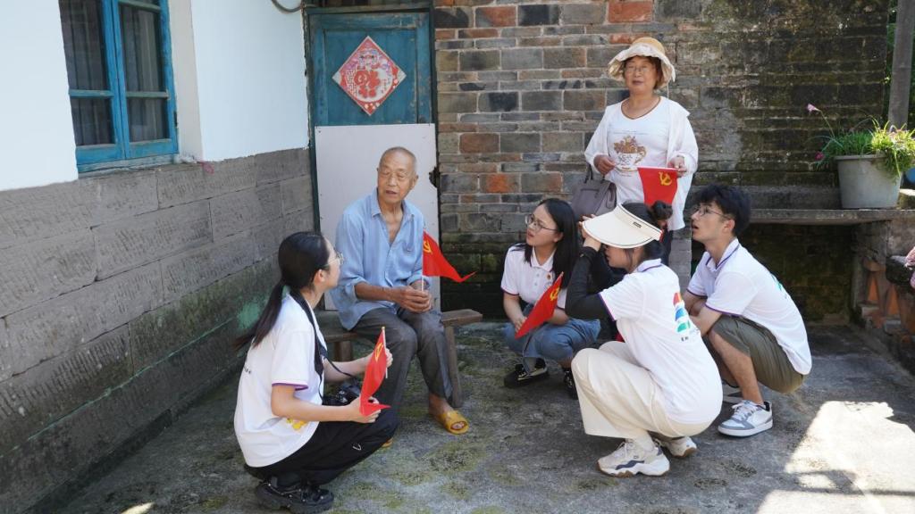 送去的是慰问,存留的是传承。志愿者们刚踏进党员的家里,老党员立刻拉出长凳,端来茶水,热血澎湃、激情四射地和同学们分享着过去的点点滴滴。“我们当时刚来到金土村的时候,人民还处在水深火热之中。我们几个驻村干部就带领着百姓一起开荒种地,当时的日子还是苦呢!”,听到老党员黄德宽的一席话,同学们不禁热泪盈眶,思绪瞬间把同学们拉回到了那个一穷二白的年代。“你们年轻一代一定要坚决拥护中国共产党,好好学习,天天向上!”,这是党员们对同学们的殷切期盼。