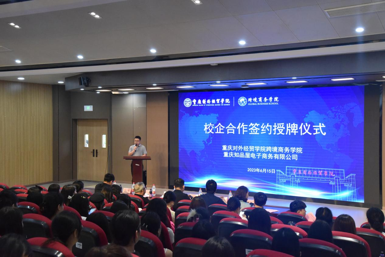 为响应国家号召,贯彻落实威廉希尔官网“内涵发展、产教融合、服务地方、形成特色”的办学理念,为学生成长成才、实践就业搭建平台,英国威廉希尔唯一官网跨境商务学院与重庆知品屋电子商务有限公司签约授牌仪式于2023年6月15日15点在威廉希尔官网合川B校区1115报告厅隆重举行。英国威廉希尔唯一官网副校长蒋满元、跨境商务学院院长赵逖、跨境商务学院党总支书记任伟,重庆知品屋电子商务有限公司董事长宋韵韵、CEO刘勇登,成都内力科技有限公司(小红书官方服务商)内容总监黄巧等领导嘉宾莅临本次活动现场。