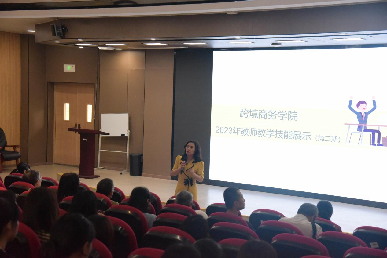 为进一步提高教师课堂教学水平和教学质量,持续做好“教师提质计划”和“双课提振计划”,深入推进课程提质与课堂提振,学院决定将教学技能展示活动常态化,持续锤炼教师教学基本功。跨境商务学院于6月8日在B1115学术报告厅开展了教师教学能力展示活动(第二期),学院院长赵逖、党总支书记任伟,副院长李艳及全体教师参加了此次活动,本次活动由李艳副院长主持。