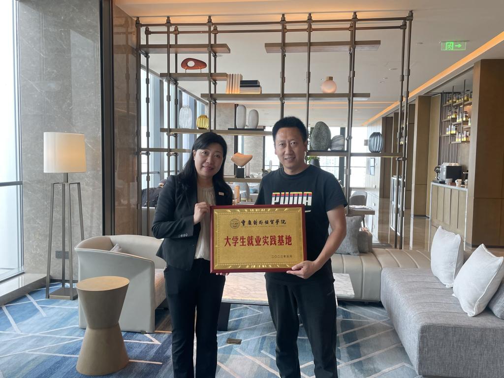 一到酒店,人力资源部周女士就带领大家参观了酒店大堂,餐厅,并对酒店客房类型,酒店设计理念进行了详细的介绍!接着,双方在酒店行政会客室进行了畅谈。期间,希尔顿酒店人力资源总监曹丽女士对酒店的创办背景、发展历程、当前主营业务以及酒店发展战略,员工福利待遇等予以介绍;管理学院周万春书记针对管理学院市级特色专业旅游管理专业师资队伍、人才培养模式以及教学实习实训等内容向酒店方进行了详细的介绍,同时也邀请酒店方代表到管理学院参观考察,以便进一步交流合作,共同培育适合社会需要的人才;就业中心副主任周昊老师就威廉希尔官网的办学特色,其他相关专业,双选会等事宜进一步进行了介绍,本次会谈学校和酒店双方就毕业生就业和实习生管理等方面均发表了意见,互通有无,并纷纷表示期望创建丰富多彩的校企合作模式,将“走出去”和“引进来”相融合,共同打造合作共赢的新局面,携手为促进重庆产教融合、经济发展做出贡献,共同培育更多优质人才!最后,双方举行了大学生就业实践基地授牌仪式,并合影留念。