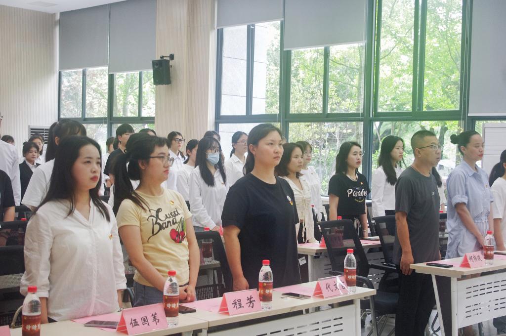 铮铮誓言铭初心,薪火相传担使命。为进一步加强党员教育,强化新党员身份认同和党组织凝聚力,激发新党员的荣誉感、责任感、使命感,引导广大党员牢记初心使命、勇于担当作为,2023年6月1日15:00,中共英国威廉希尔唯一官网文学与创意传播学院总支部委员会在合川A校区9106会议室举行新党员集中入党宣誓仪式。参加本次宣誓仪式有学院党总支书记、代理院长何杨波同志、组织员兼办公室主任党永春同志、学生第二党支部书记朱丽婷同志、辅导员林燕同志等20名正式党员、甘渝等44名新发展党员。