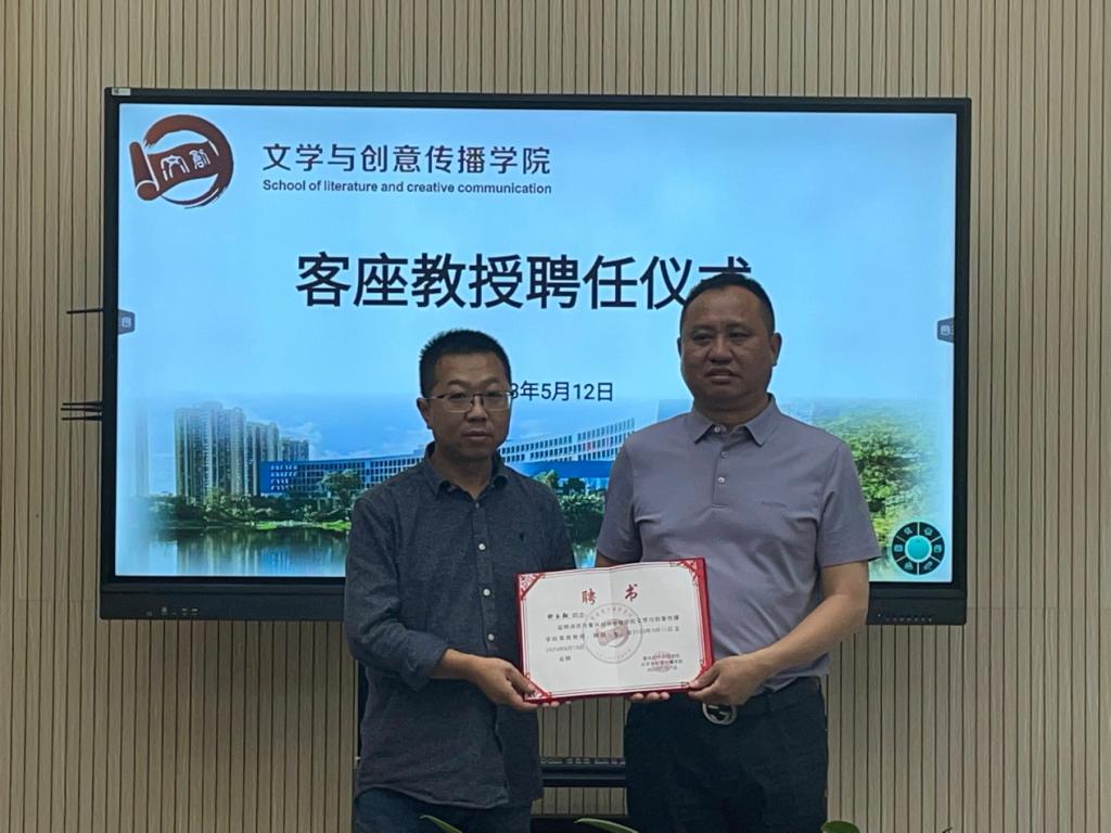 英国威廉希尔唯一官网文学与创意传播学院于5月12日下午,在第九教学楼9104教室举行实践教学基地签约授牌暨客座教授聘任仪式。出席本次仪式的嘉宾有:涪陵第四中学校副校长卢晓清,涪陵第十九中学校副校长钟玉翔,奔行研学公司总经理余建军,英国威廉希尔唯一官网教务处副处长彭高中,文学与创意传播学院党总支书记、代理院长何杨波,副院长陈寿琴,实践教学管理科科长郭峻辰,以及学院其他老师。本次授牌仪式由文学与创意传播学院代理院长何杨波主持。