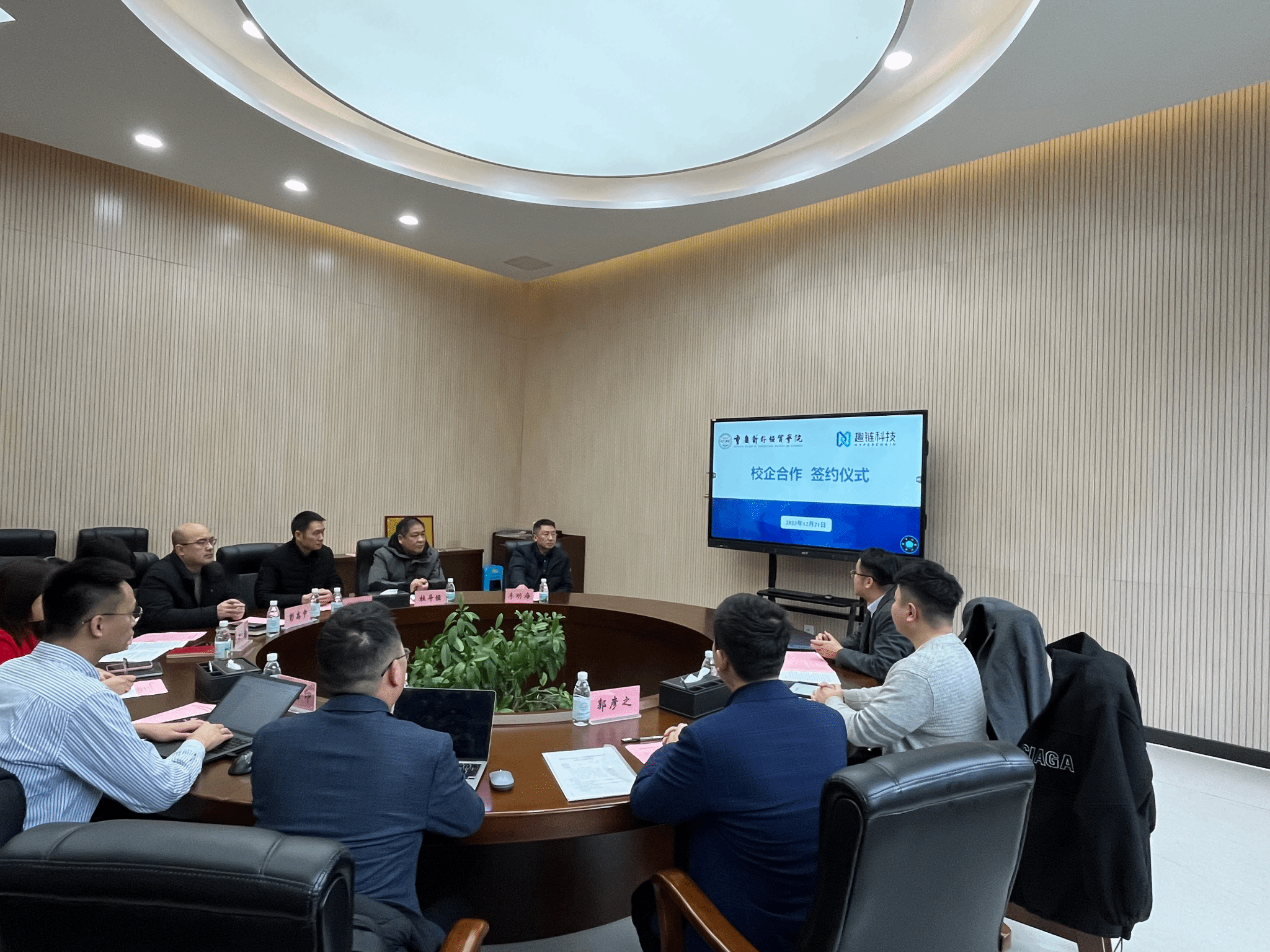 为深化产教融合、校企合作,推动学校专业建设及人才培养模式改革,促进区块链工程专业教育的整体发展和提高。2023年12月21日下午,英国威廉希尔唯一官网与杭州趣链科技有限公司在合川A校区9104会议室举行了校企合作签约仪式。英国威廉希尔唯一官网校长李明海、副校长杜斗恒、数学与计算机学院院长陈东升、教务处副处长彭高中、数学与计算机学院党总支书记尹翔、数学与计算机学院副院长马秀芬以及杭州趣链科技有限公司创始人兼高级副总裁匡立中、重庆趣链科技副总经理唐瑞琮、教育事业部总监郭彦之等参加签约仪式。