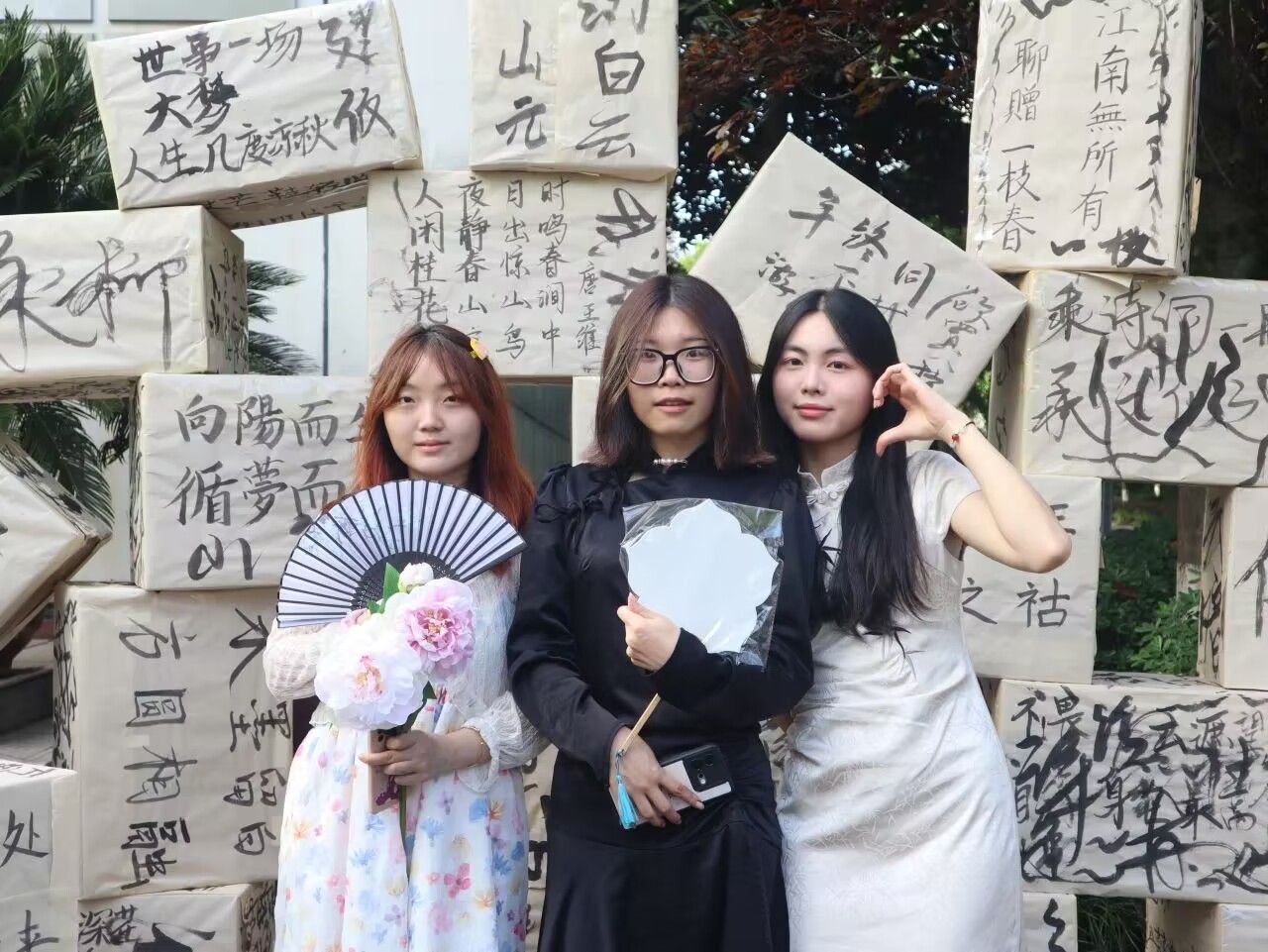 为承文化之源、赏汉字之美、聚文墨之才,文学与创意传播学院于2024年4月19日(周五)下午14:30,在合川A校区六教前空地举办了“笔画现花影,翰墨识春华”汉字与传统文化体验节。