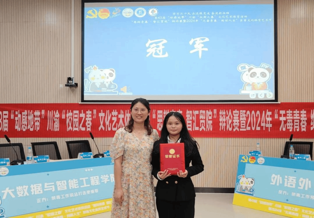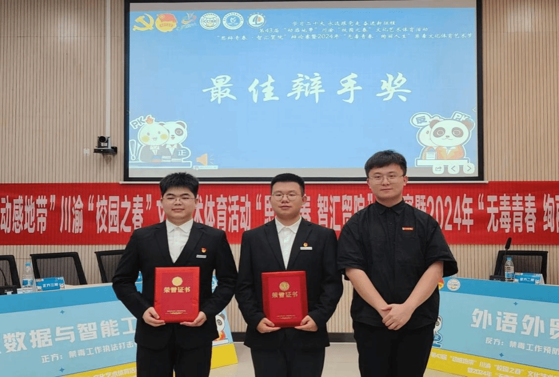 为提高青年大学生的禁毒意识、逻辑思维能力以及语言表达能力,由团委主办、管理学院与外语外贸学院共同承办的第43届“动感地带”川渝“校园之春”文化艺术体育活动“思辩青春 智汇贸院”辩论赛决赛暨“无毒青春 绚丽人生”禁毒文化体育艺术节,于5月28日在合川A校区9106会议室顺利举行。