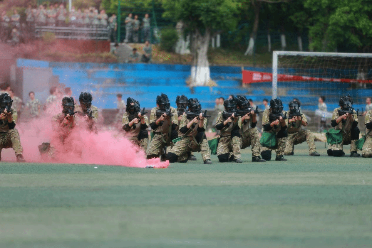 此次军训大比武包括队列方阵、整理内务、九五式自动步枪分解结合、卫生与救护、刺杀操、防爆队形以及战术等多个项目。