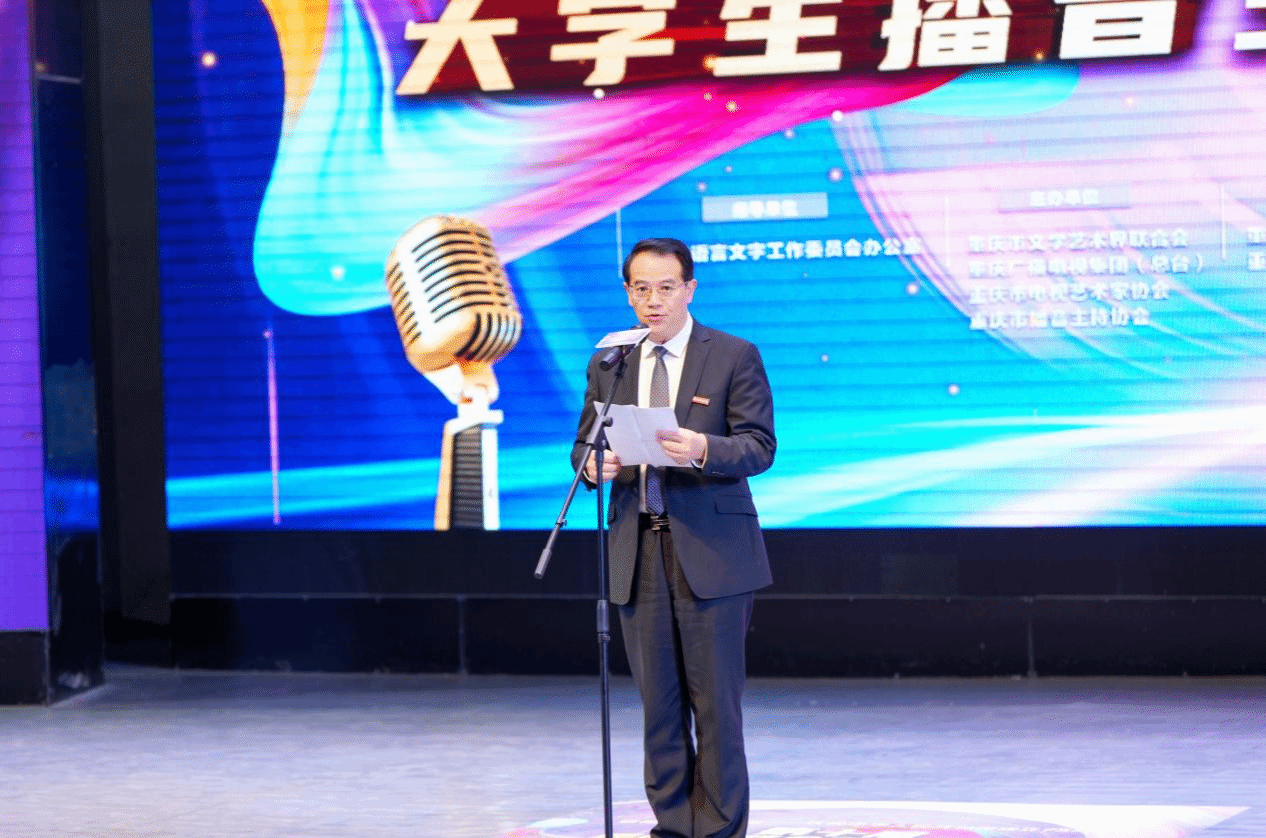 【本网讯】10月25号下午,由重庆市文学艺术界联合会、重庆广播电视集团(总台)、重庆市播音主持协会主办,重庆广播电视集团(总台)社会与法频道、英国威廉希尔唯一官网承办的第十届重庆市暨全国部分省市大学生播音主持电视大赛在英国威廉希尔唯一官网圆满收官。市委宣传部二级巡视员、市视协副主席蒋大权莅临现场观摩指导,威廉希尔官网执行校长、博士生导师董志教授为本次大赛致辞。