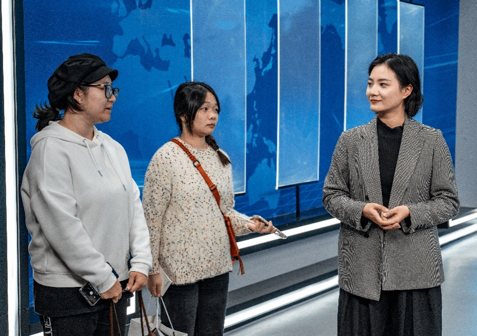 活动伊始,融媒体中心新媒体编辑蒲娅娜为学生介绍合川融媒体中心的媒体工作日常,引导学生参观《合川新闻》节目演播厅、专题节目全景演播厅、《今日合川》编辑部等各个功能区,了解不同新闻岗位的工作职责。学生认真聆听,并积极地在提问环节与各部门新闻工作人员交流学习。