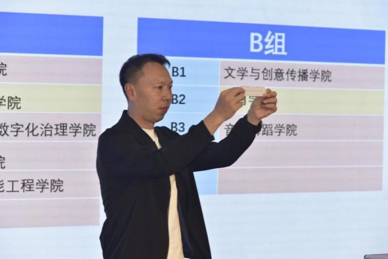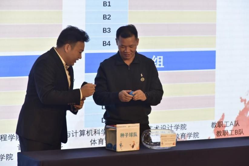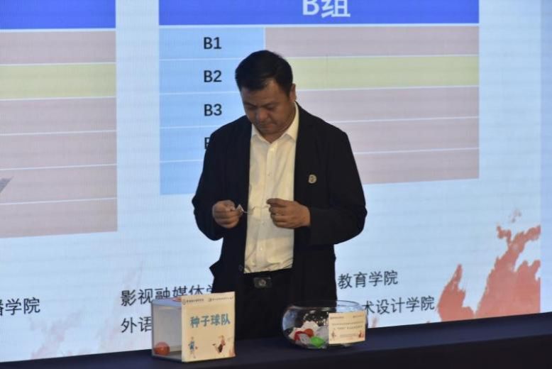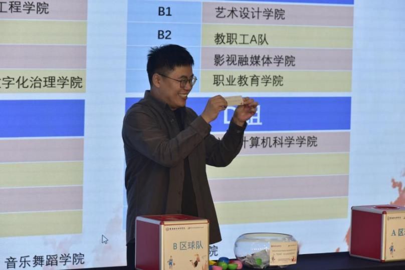 随后,跨境商务学院曾继鹏老师主持抽签仪式,由在场领导分别为男子篮球A、B、C、D组,女子篮球A、B组进行抽签分组,现场气氛热烈、激情四溢。
