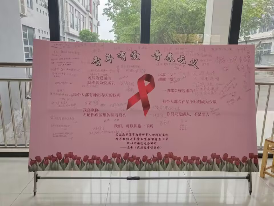 生命与你同在,艾滋病人也有家。铜梁校区在校园内展示海报宣传防艾知识,设置展板位供同学们留下签名,留下对艾滋病感染者的殷切期盼;信笺之约,悄然来临,寻找校园中防艾明信片,获得小礼品,去感受艾滋病感染者的小小愿望。