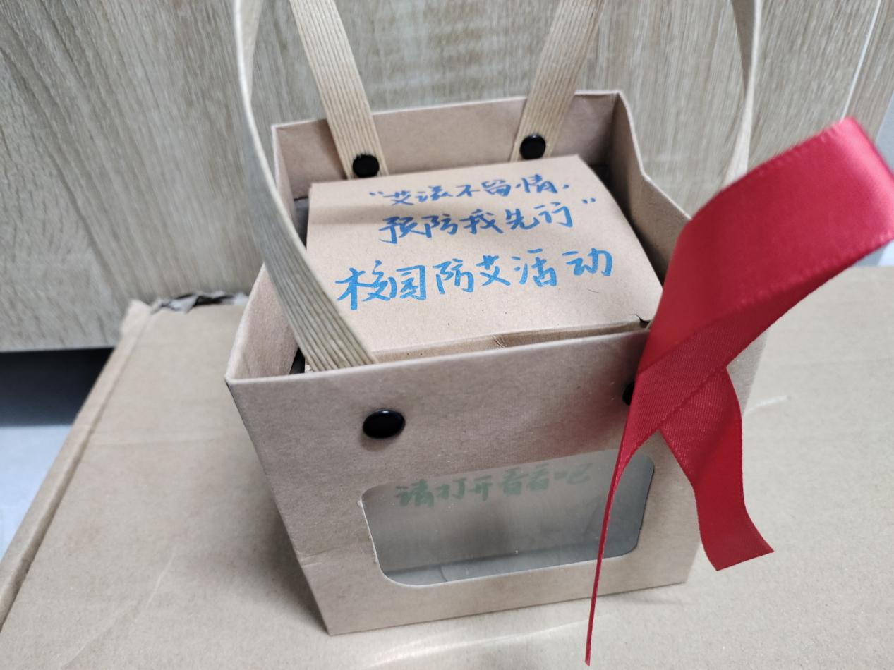 手牵手同牵红丝带,心连心共防艾滋病。校园寻宝,寻的是真情;活动风采展,看的是行动。合川B校区食堂边上,同学们可以在红丝带上留字,为艾祝福;将红丝带粘贴在展板上,用红丝带汇成“红丝带”,为艾发声;寻找校内的小礼盒,学习艾滋病的相关知识,回到线下打卡点,领取你的收获。努力不会白费,同学们也将在这里留下痕迹,影响着他人。